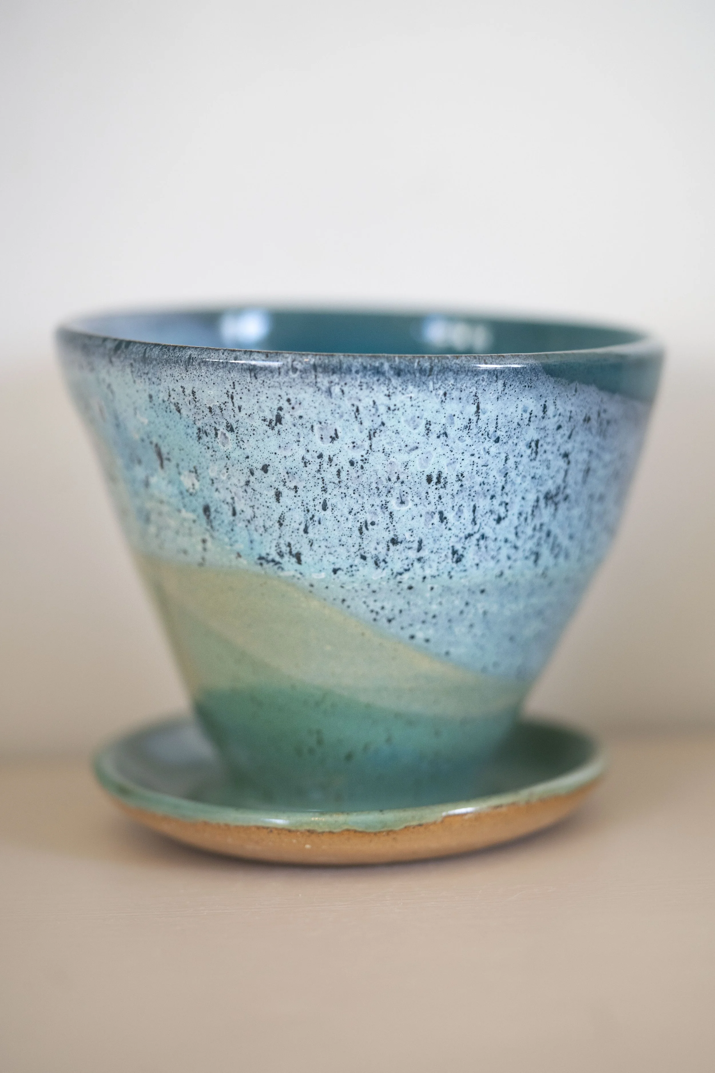 This stoneware coffee pour-over is hand made and one of a kind, so there’ll never be another piece just like it.